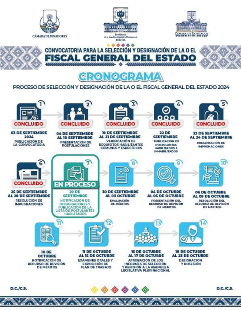 La Comisión debe concluir con su labor de selección hasta el 18 de octubre y remitir la nómina al pleno de la Asamblea Legislativa, donde con dos tercios debe designarse al reemplazante del actual fiscal general del Estado, Juan Lanchipa, cuyo mandato fenece el 22 de octubre.
