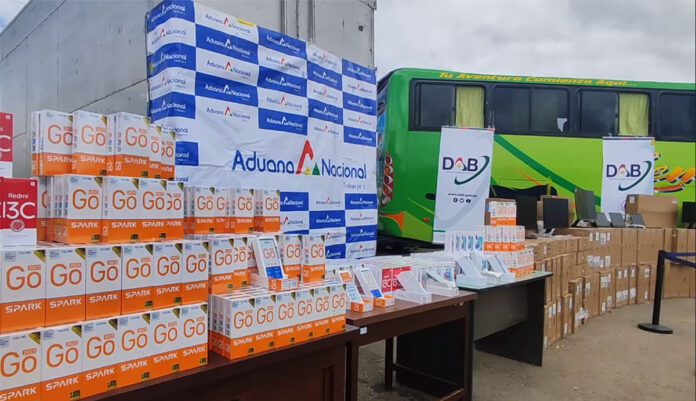 La Aduana Nacional comisó más de 1.000 celulares y 772 equipos de computación de contrabando, en operativos realizados en Viacha, Achica Arriba y El Alto, en el departamento de La Paz, informó la gerente regional de la Aduana La Paz, Susana Ríos.