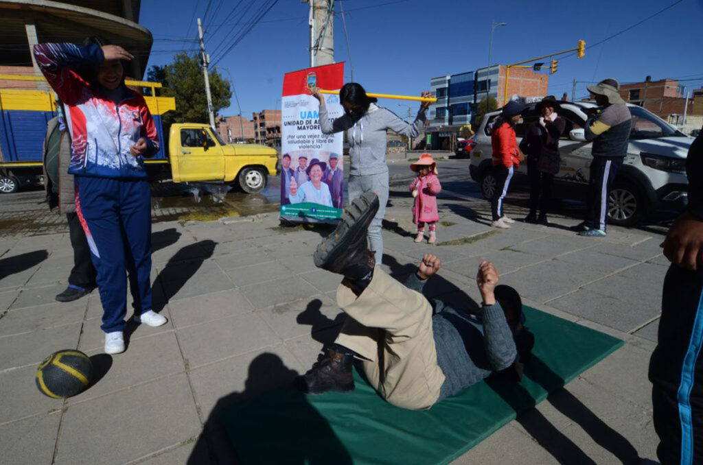 “Cuando las personas entran a la etapa de tercera edad, pierden fuerza muscular y tienen limitación en las articulaciones, con estos ejercicios ganan fuerza y no tienen impedimento para caminar ni levantarse”, señaló el fisioterapeuta-kinesiólogo, Miguel Mamani.