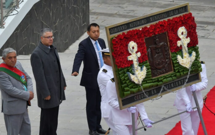 A las 08:23 de este viernes el alcalde de La Paz, Iván Arias, acompañado de su comitiva, entregó la ofrenda floral del Gobierno Autónomo Municipal de La Paz a los pies del monumento a Eduardo Abaroa, en conmemoración a los 145 años de la heroica defensa de Calama.