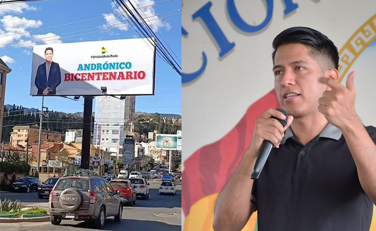 “¿Se podrá sacar publicidad electoral en este tiempo?”. La valla está instalada en la zona de Achumani; muestra una fotografía de Rodríguez con el lema “Andrónico Bicentenario” y “Unidos ante todo”, señaló.