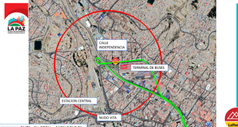 Según la planificación municipal, se fijó dos paradas para que las personas lleguen al edificio del punto Monobloc de la UMSA, las que estarán en la Cervecería Boliviana Nacional, en la Av. Montes, y en inmediaciones de la Automóvil Club Boliviano (ACB), de la Av. Arce. Para llegar al hospital Nuestra Señora de La Paz, las personas podrán abordar los vehículos en la Av. Los Sargentos y plaza Ramiro Castillo de la Av. Buenos Aires.