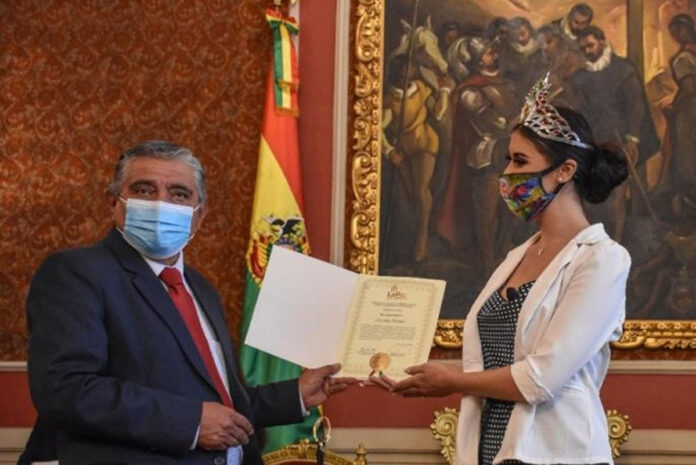 Asimismo, la representante de belleza paceña agradeció el reconocimiento y los nombramientos y se comprometió a trabajar por el desarrollo de la ciudad.