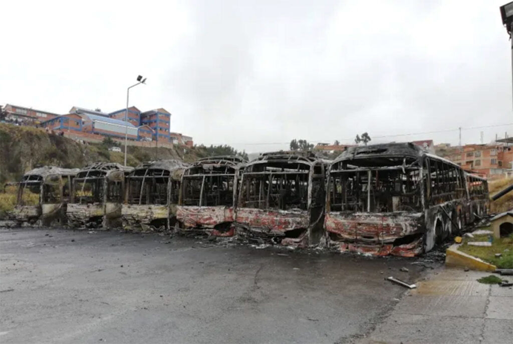 “Se ha quedado estancado el tema y ante tanta insistencia nuestra hay la forma de ver de disponer la chatarra (de los buses quemados), pero ese no es el total querido Alcalde, lo que tenemos que ver es que los responsables tienen que pagar”, explicó Soliz.