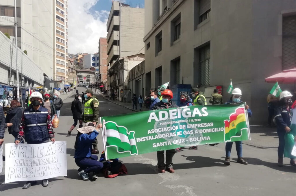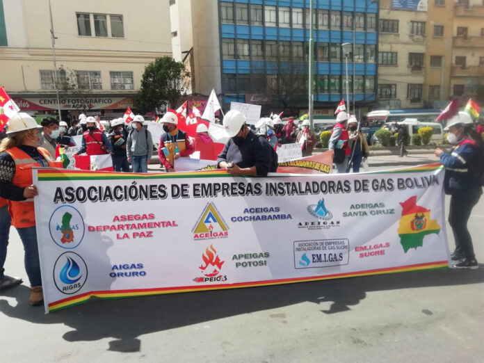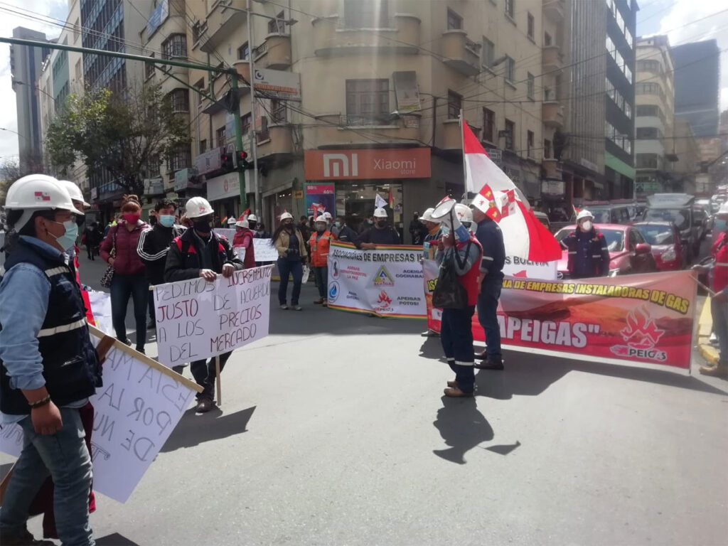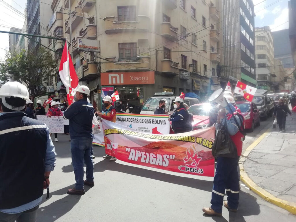 La Asociación de Empresas Instaladoras de Gas-Bolivia, luego de buscar en varias oportunidades reuniones fallidas con los técnicos de gerencia de redes y el asesor de YPFB resolvieron realizar una movilización ayer jueves, frente al Palacio de Comunicaciones para hacer conocer sus demandas.