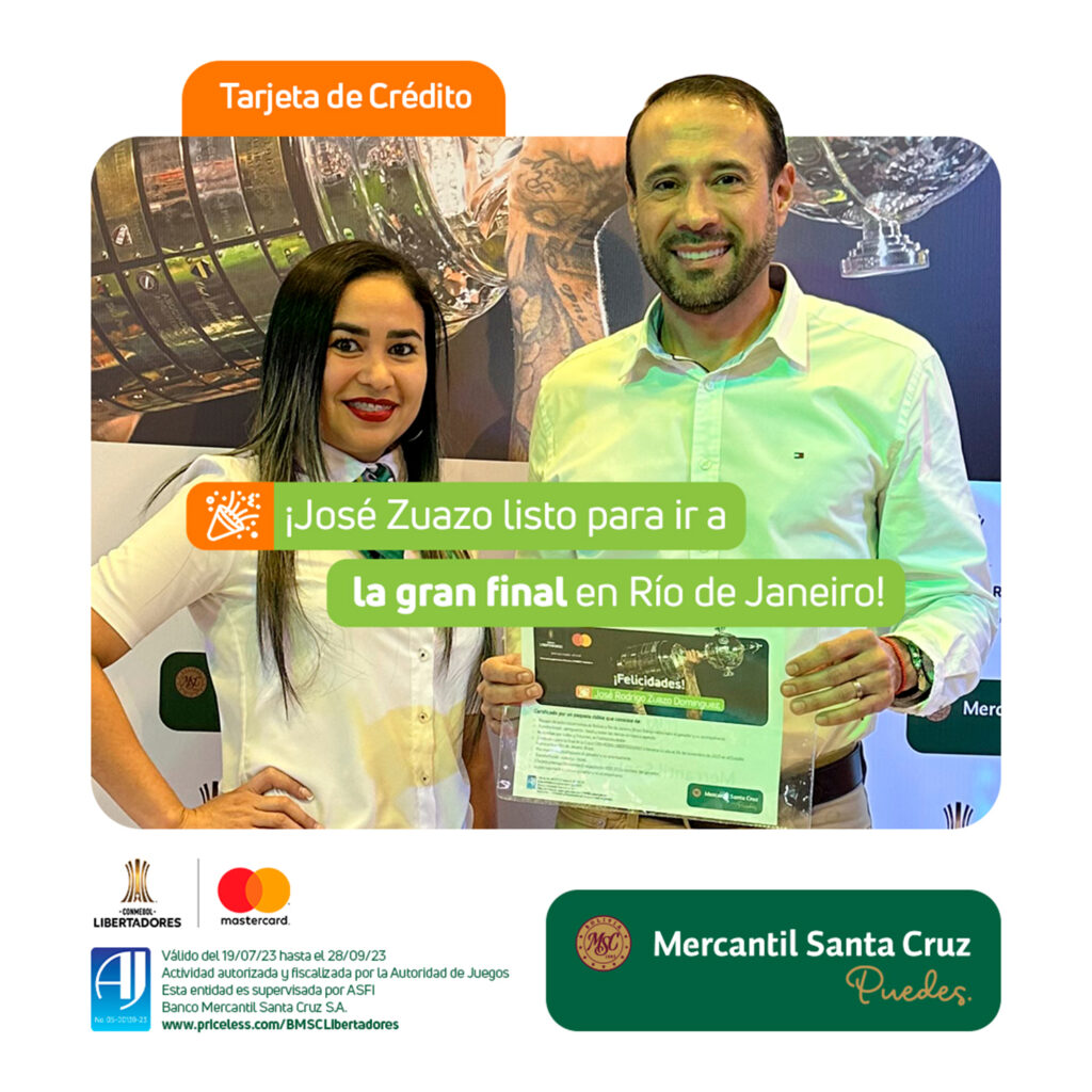 El Banco Mercantil Santa Cruz y Mastercard se juntaron para brindarle a sus clientes la oportunidad de asistir al partido más importante del continente, la final de la CONMEBOL LIBERTADORES que se llevará a cabo este 04 de noviembre.