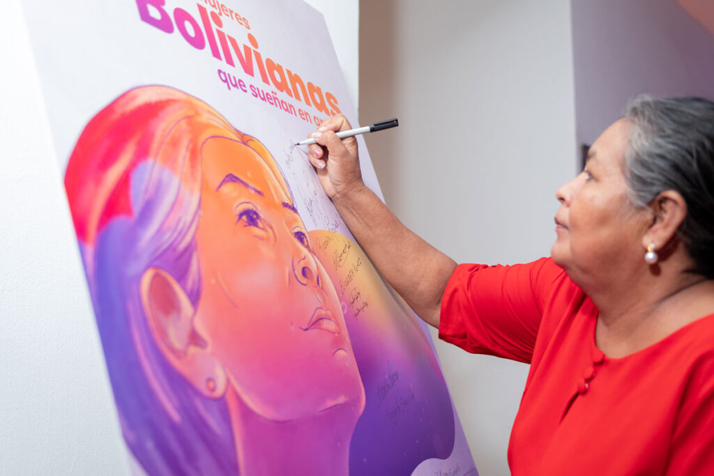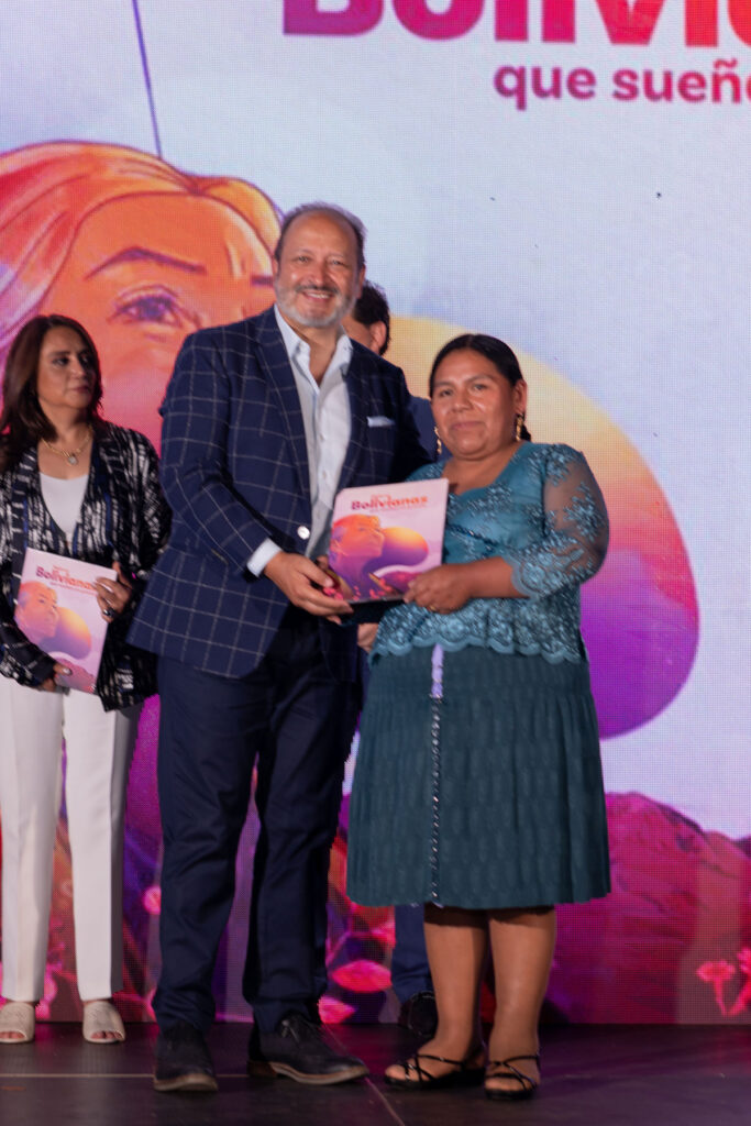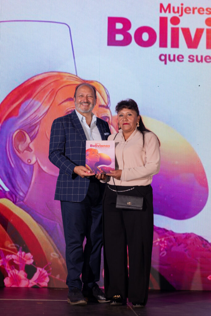 • En el mes de la mujer boliviana y en el marco del lanzamiento del programa “Avanza Mujer”, el libro “Mujeres Bolivianas que sueñan en grande” quiere reconocer el espíritu emprendedor de las mujeres del país, su contribución al crecimiento económico, e inspirar a otras mujeres de generaciones presentes y futuras.