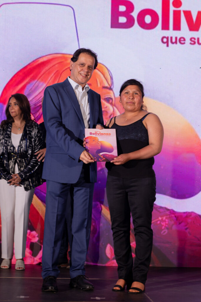 En esta oportunidad, la ejecutiva también precisó que en Bolivia el 46% de los emprendimientos son liderados por mujeres, y que de 3 millones de mujeres que conforman la población económicamente activa en el país el 70% son emprendedoras o empresarias. Por ello, “este libro es un reconocimiento a cientos de miles de emprendedoras bolivianas representadas por diez extraordinarias mujeres a quienes tenemos el privilegio de servir”, dijo.