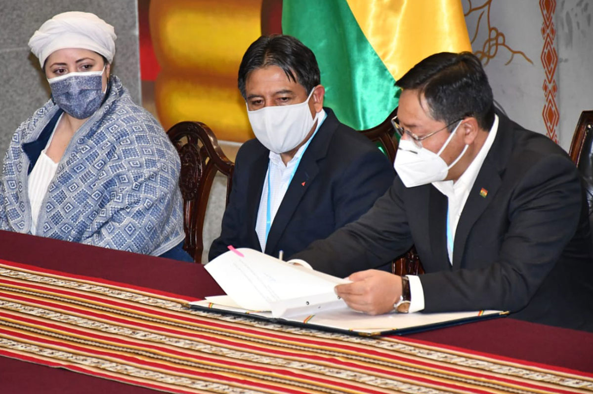 El presidente Luis Arce promulgó la tarde de este jueves dos leyes que permitirán que la población no asalariada reciba desde diciembre el denominado Bono contra el Hambre de Bs 1.000 para paliar los efectos de la crisis económica desatada por el coronavirus en las familias.