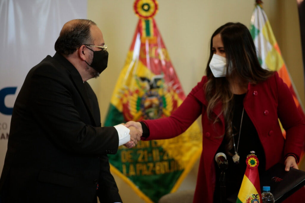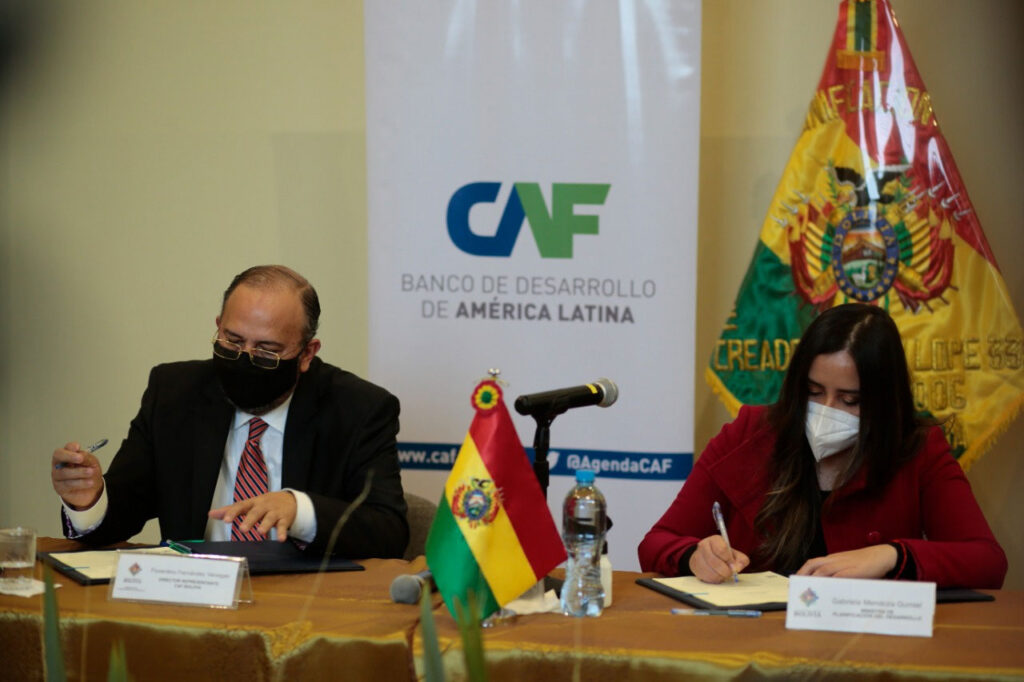 Ambos contratos fueron firmados en la ciudad de La Paz por el Representante de CAF en Bolivia, Florentino Fernández, y la ministra de Planificación del Desarrollo, Gabriela Mendoza.