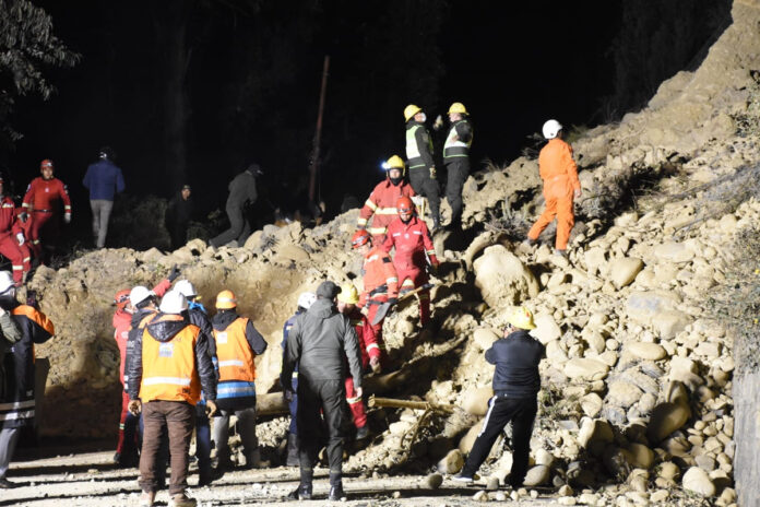 “Dos vehículos, uno de subida y otro de bajada; con el deslizamiento los autos fueron empujados hacia la pared; cuatro personas de bajada y dos de subida, se liberó a seis personas; no sabemos si hay uno o dos vehículos más”, afirmó ayer burgomaestre desde el lugar del siniestro.