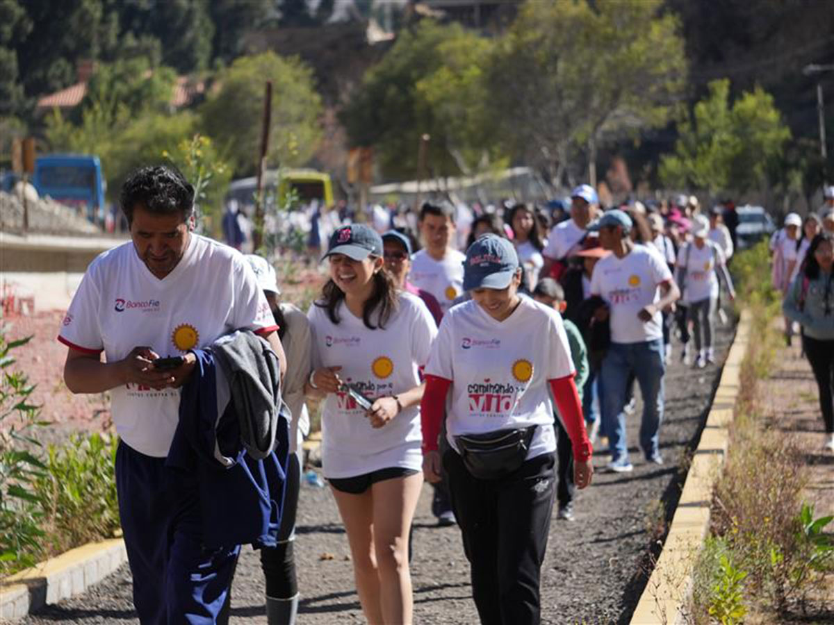 En ese marco, Banco FIE, ONG FIE, junto a las entidades y empresas aliadas, llevaron adelante la caminata en la ciudad de La Paz a través de su ruta tradicional, que recorrió 12 kilómetros desde el parque “Las Cholas” hasta el “Club de Tenis La Paz” en Huajchilla, con la participación de 4,558 caminantes comprometidos con esta causa.