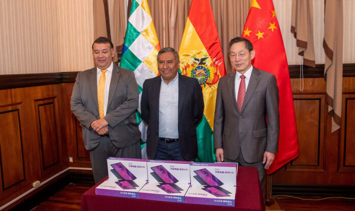 Los dispositivos electrónicos, entregados en calidad de donación, están valorados en 3,3 millones de yuanes, equivalente a $us 462.000.