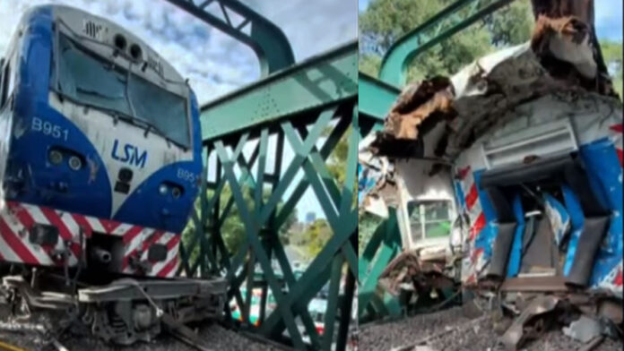 Según el comunicado de Trenes Argentinos, el tren de pasajeros de la línea San Martín colisionó con una locomotora y un coche furgón vacío a las 10:31 (hora argentina),en el km 4,900 sobre el viaducto Palermo, a la altura de la Av. Alcorta.