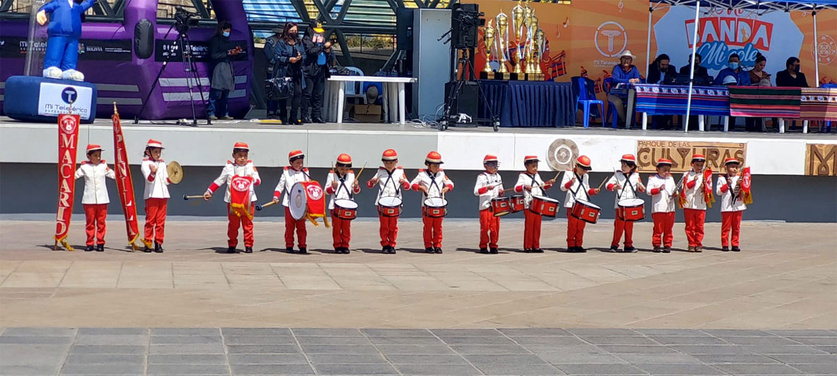 “Una convocatoria que se ha hecho bajo la recomendación de nuestro hermano Presidente, Luis Arce Catacora y nuestro hermano Ministro Edgar Montaño. No solamente nos dedicamos a incentivar la economía y fortalecer las iniciativas innatas que tiene nuestra juventud en el aspecto cultural, cívico y patriótico al interpretar estas melodías de las bandas de guerra”, destacó el Sergio Choque, Gerente Ejecutivo de Mi Teleférico, a tiempo por dar por inaugurado el evento.