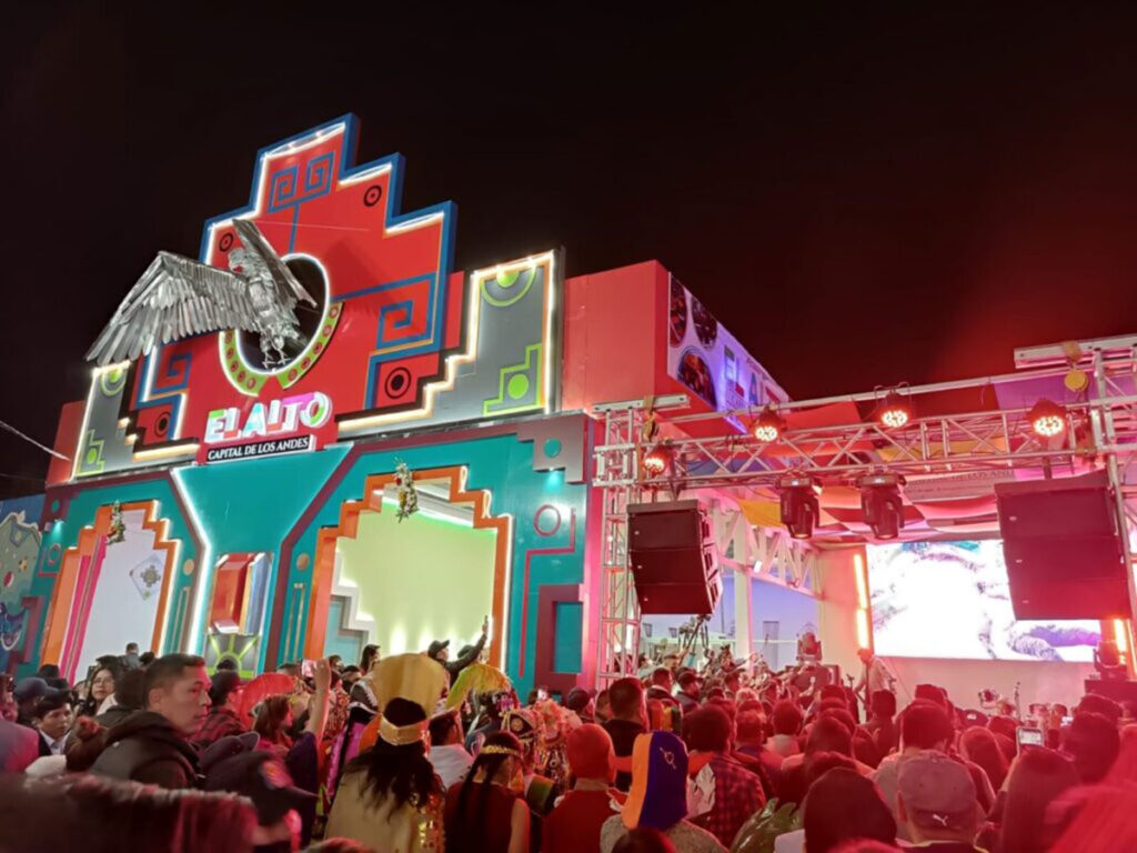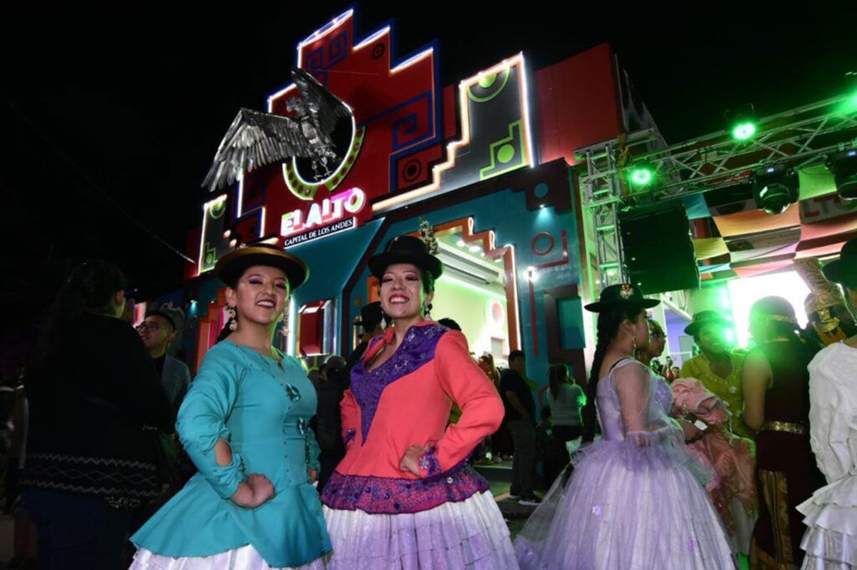 Un cóndor de dos metros de altura en la cima de un cholet, que simboliza el crecimiento económico de la urbe alteña, dio la bienvenida a cientos de visitantes. La Escuela Municipal de Artes también deslumbró con las coreografías de los bailarines de morenada, tinku y cueca paceña.