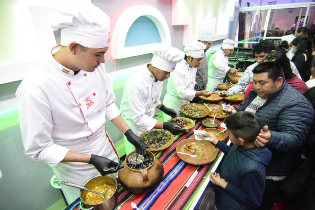 Durante la inauguración se distribuyó la tradicional sopita de fideo, acompañada de huevo duro y frito, silpancho y tortilla. Y para amenizar la noche, donde cientos de personas se tomaban fotografías con el colorido cholet, se presentaron los grupos musicales Linces y Veneno que deleitaron al público presente.