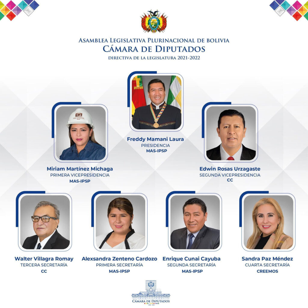 Después de las contiendas el nuevo directorio quedó conformado por Mamani (MAS) como presidente; Miriam Martínez (MAS), primera vicepresidencia; Edwin Rosas (disidente de CC), segunda vicepresidencia; Alexandra Centeno (MAS), primera secretaría; Enrique Cunai (MAS), segunda secretaría; Wálter Villagra (CC), tercera secretaría; y Sandra Paz (disidente Creemos), cuarta secretaría.