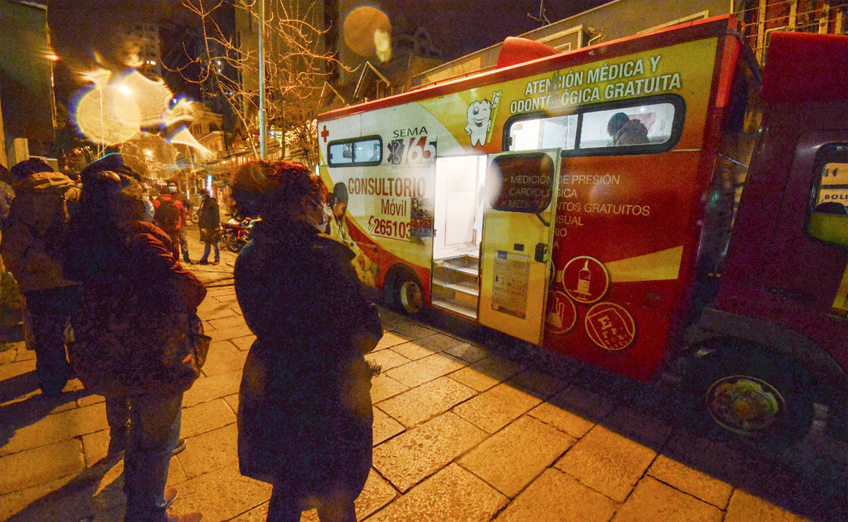 Los consultorios móviles, que están equipados en ambulancias de la comuna paceña, funcionan entre las 22.00 y las 05.00 y se estacionan en puntos específicos donde la población debe acercarse para recibir la atención de profesionales médicos y de enfermería.