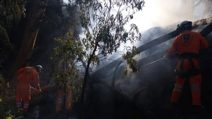 “Culminamos el apoyo en el incendio del Cementerio La Llamita, hemos evidenciado dos columnas de humo, la primera era la que más nos preocupaba porque estaba tomando ya una cantidad más grande; aparentemente abarcaba mucho terreno quemándose, entonces nos hemos aproximado a la ecovía, cerca del desvío a Munaypata en la autopista”, informó el subcomandante de GAEM, Maycool Guzmán.