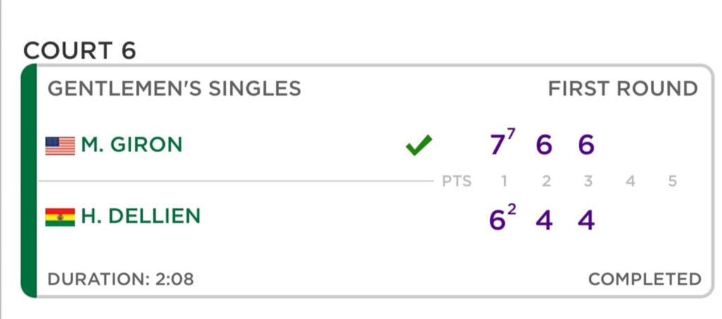 Hugo Dellien perdió con el estadounidense Marcos Giron: 7-6(2), 6-4 y 6-4 y quedó eliminado en singles de la primera ronda del cuadro principal de Wimbledon, en Londres Inglaterra, donde este miércoles se reanudó su partido luego de haber sido suspendido el martes por el mal clima.