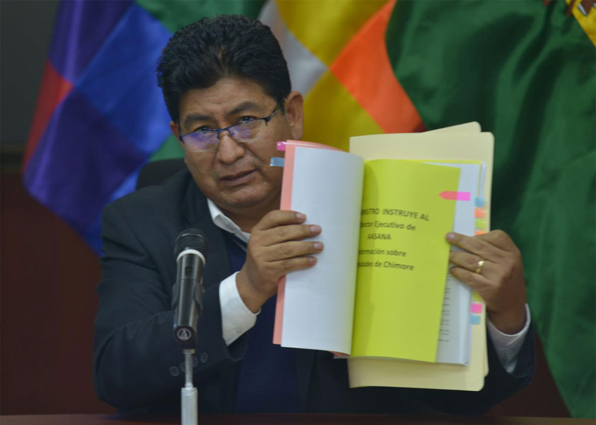 «Nuestro gobierno, el gobierno de Lucho y David, no va a permitir actos irregulares de ninguna naturaleza, es por eso que estamos destituyendo al ingeniero Balderrama», informó el Ministro en rueda de prensa.