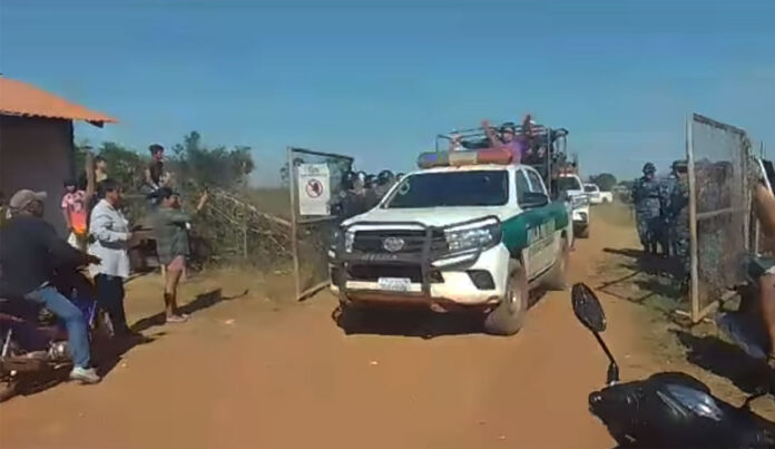 Efectivos de la Policía Boliviana trasladaron hasta Riberalta, Beni, a las 38 personas que deben cumplir detención domiciliaria por el caso de explotación ilegal de oro en el río Madre de Dios.