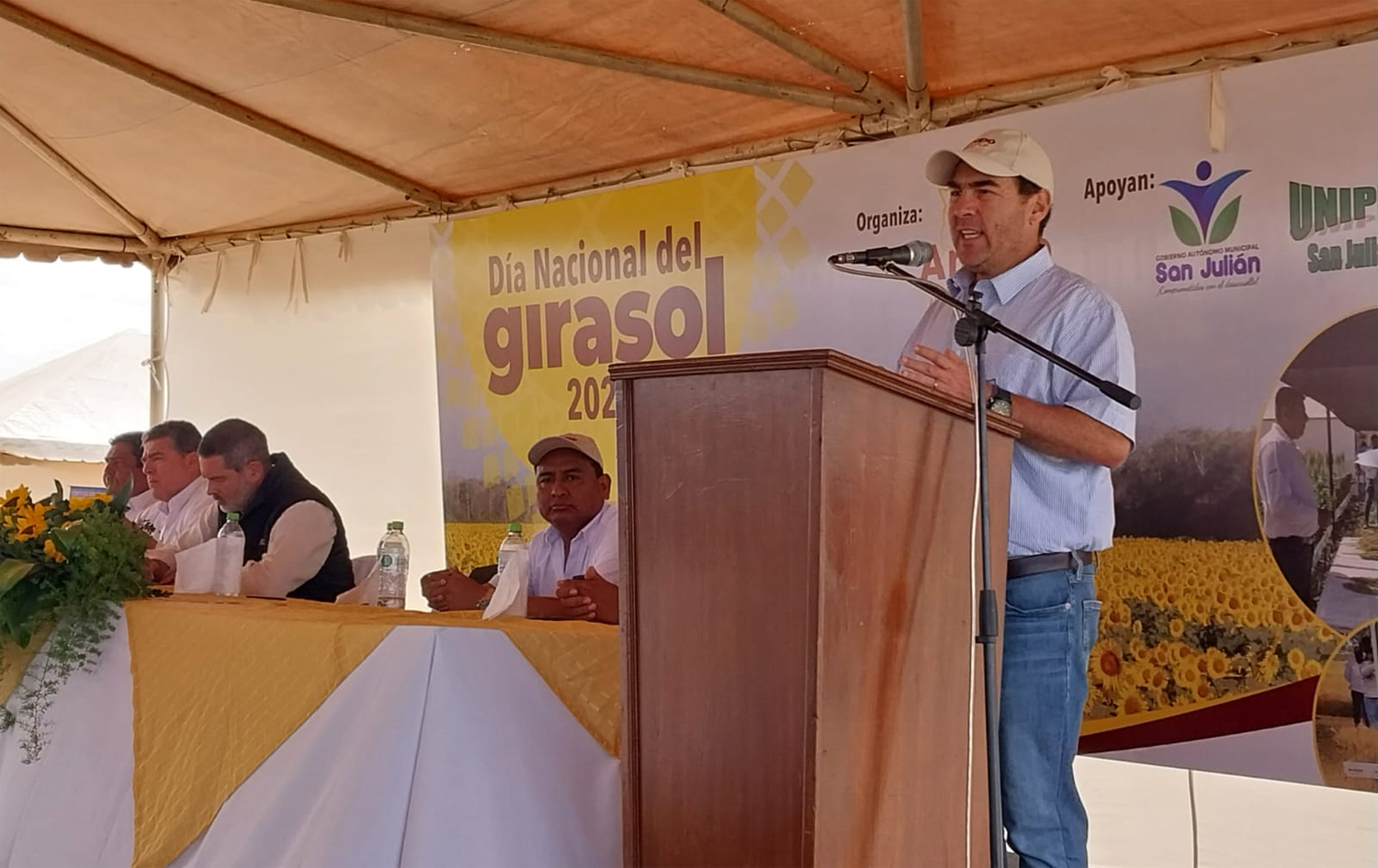 El evento tecnológico por el Día Nacional del Girasol fue un esfuerzo de la filial de Anapo en San Julián, a la cabeza de su presidente, el productor Hugo Flores; y el ente comercial de los agricultores, la Unión de Productores de San Julián (Unipros). Además, contó con el apoyo del Gobierno Autónomo Municipal de San Julián. “Más del 65% de la producción de nuestro municipio está destinada al girasol, es sin duda el principal cultivo de invierno. Necesitamos trabajar en conjunto con todas las autoridades para acceder a la biotecnologia, dar sostenibilidad a la seguridad alimentaria y apoyar a los demás agricultores de esta zona” destacó Limberg Vargas, Secretario de Desarrollo Productivo de San Julián.