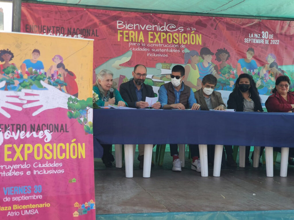 En el marco de la Feria Exposición “Iniciativas para la construcción de ciudades sustentables e inclusivas (La Paz, El Alto, Santa Cruz y Cochabamba)” realizada en el Atrio de la Universidad Mayor de San Andrés, con la presencia de más de 50 estudiantes de La Paz, Cochabamba, Santa Cruz y El Alto se realizó la presentación del libro, “Jóvenes construyendo ciudades sustentables e inclusivas”, en el que se resumen las principales propuestas y trabajos planteados por los alumnos para la construcción de ciudades sustentables e inclusivas.