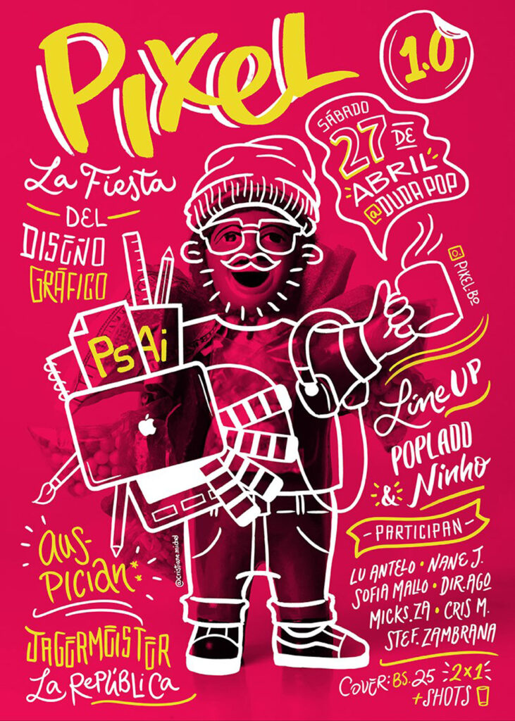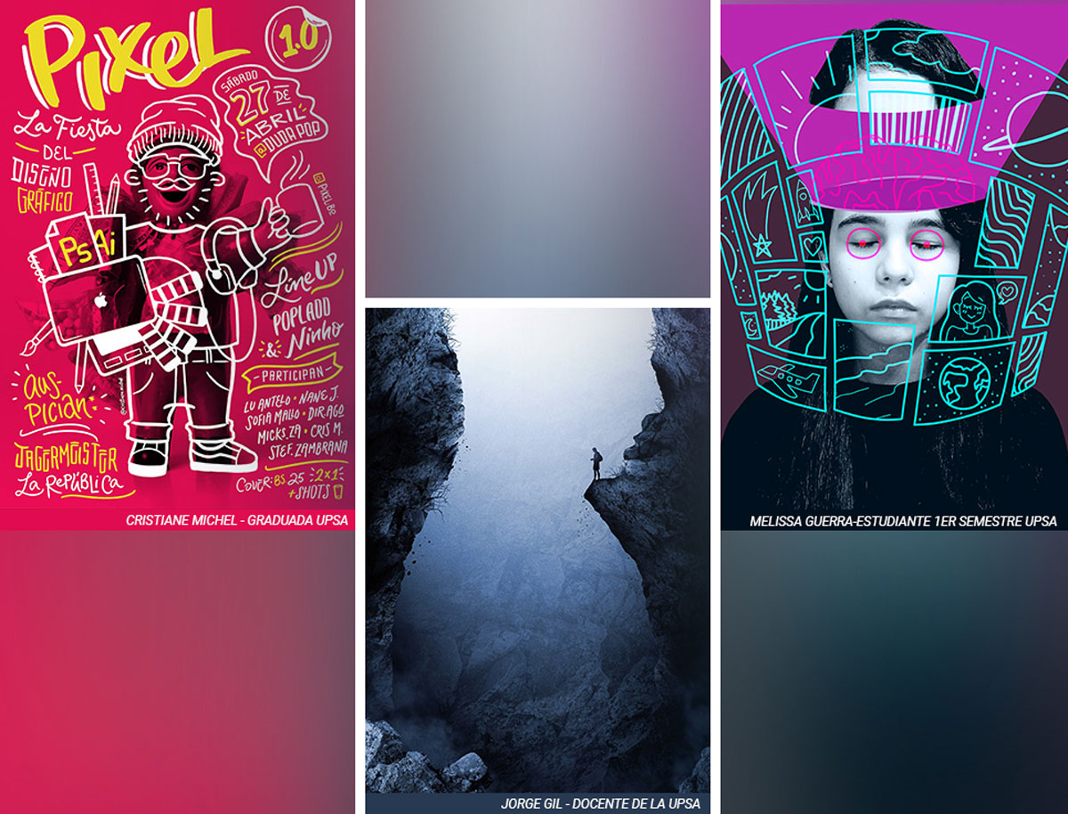 Jorge Gil, docente de la UPSA, y Melissa Guerra estudiante de primer semestre de Diseño Gráfico de la UPSA, fueron tomados en cuenta entre los 55 preseleccionados de la categoría Cartel Inédito, mientras que Cristiane Michel, graduada de la UPSA, integra la lista de los 35 preseleccionados de la categoría Cartel Social.