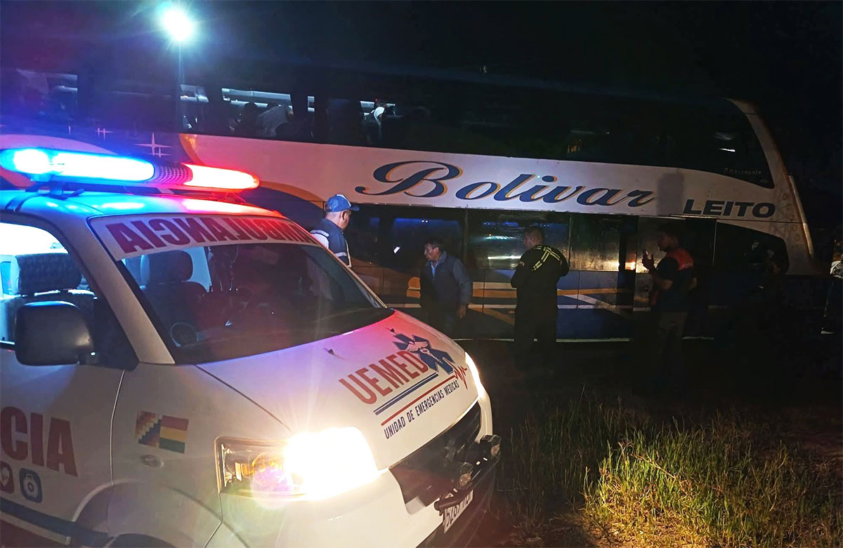 Un bus de la empresa Bolívar, que cumplía la ruta Santa Cruz–Sucre, fue impactado por una roca de gran tamaño que se desprendió de un cerro. El siniestro, registrado a la altura de La Angostura (sector Bermejito), dejó un saldo de dos personas fallecidas y dos heridas de gravedad.