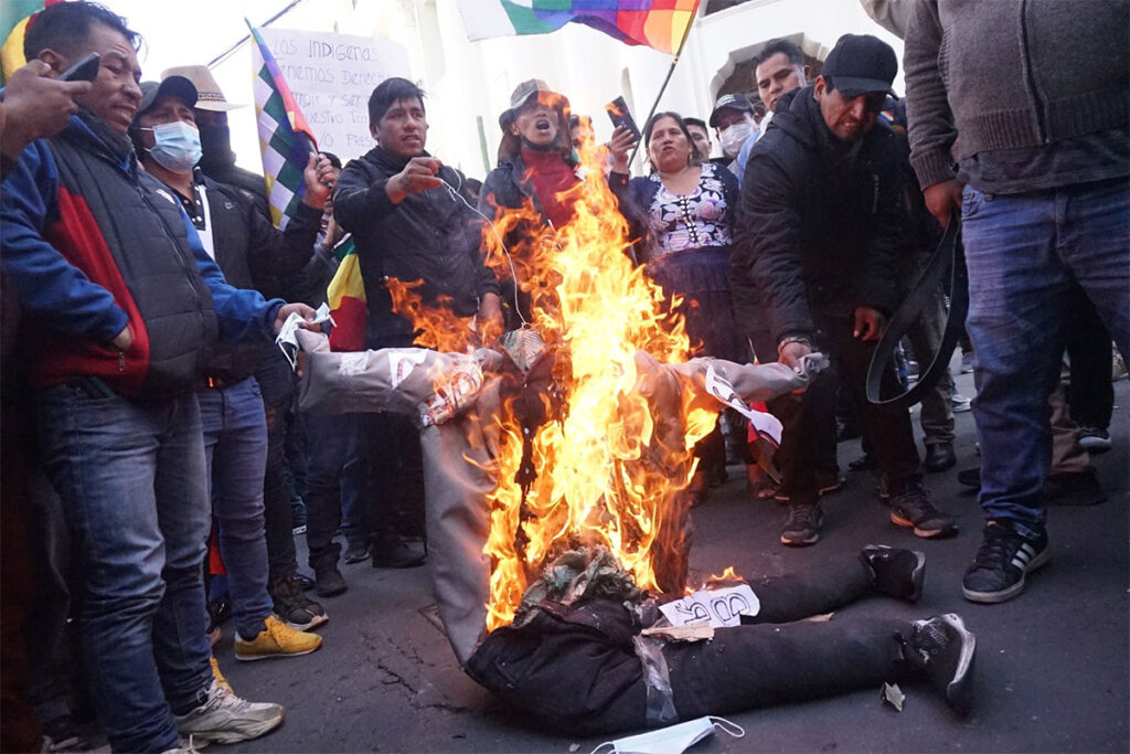 La protesta evista exige al Tribunal Supremo Electoral (TSE) la habilitación de Morales como candidato presidencial para las elecciones generales del próximo 17 de agosto, a pesar de que el Tribunal Constitucional Plurinacional (TCP) ratificó su inhabilitación al declarar inconstitucional la reelección continua y discontinua.