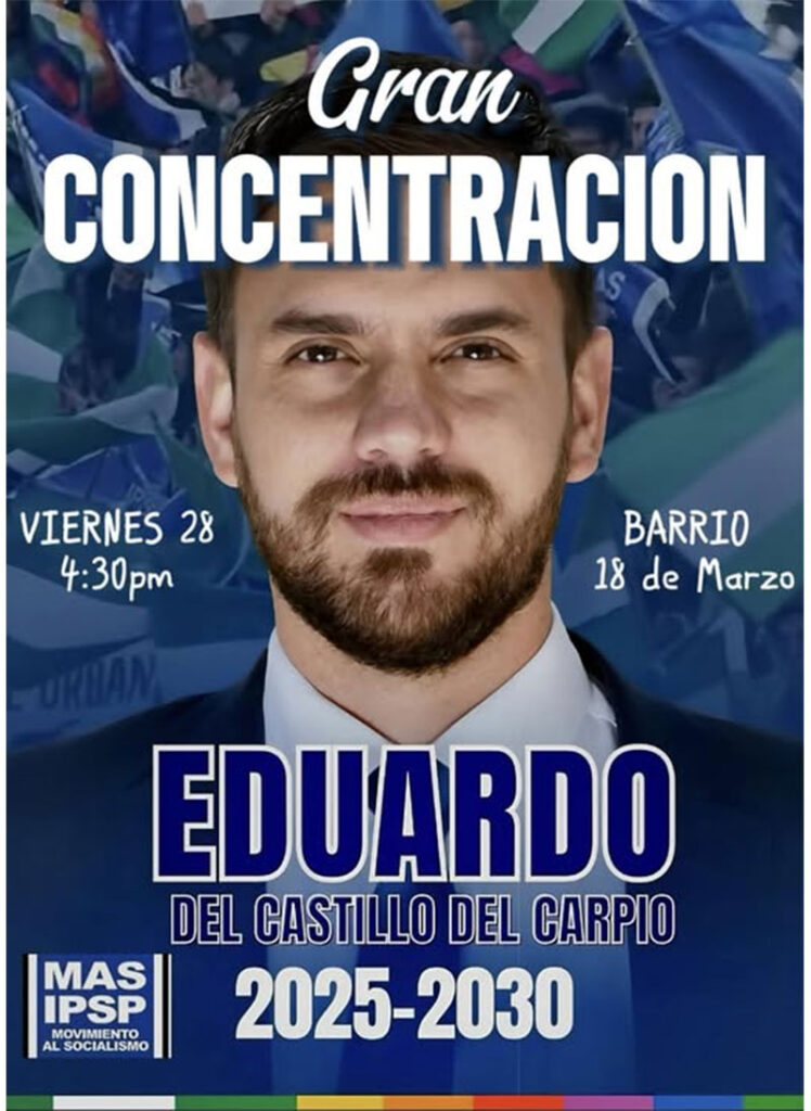 Organizaciones sociales del MAS arcista anunciaron que proclamarán al ministro de Gobierno, Eduardo del Castillo, como candidato presidencial para las próximas elecciones nacionales.