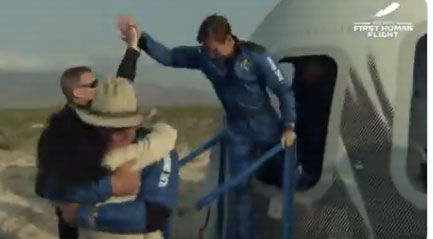 Durante el trayecto y una vez que alcanzaron los 76 kilómetros de altura, la cápsula en la que viajaron se separó del cohete propulsor, para luego continuar por su cuenta los restantes 30 kilómetros.