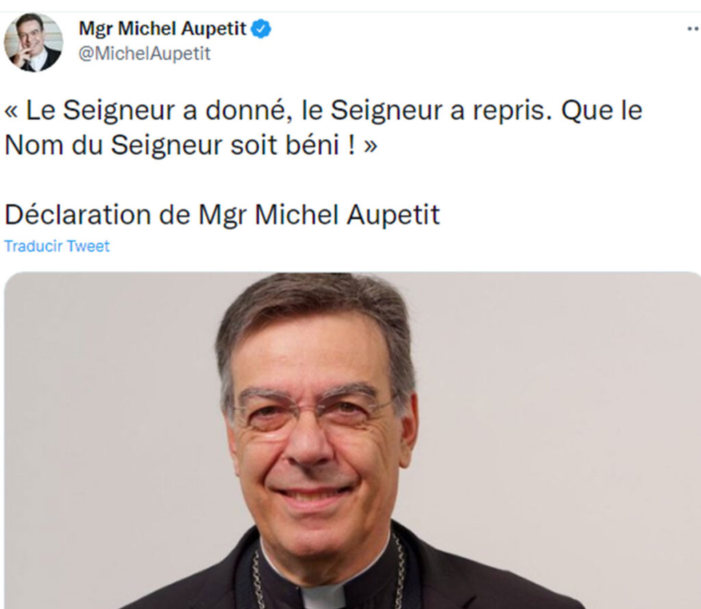 «Por supuesto, me molestaron mucho los ataques contra mí. Hoy doy gracias a Dios porque mi corazón está profundamente en paz (…) rezó por aquellos que puedan haberme deseado mal pido perdón a los que haya podido herir”, expresó Aupetit.