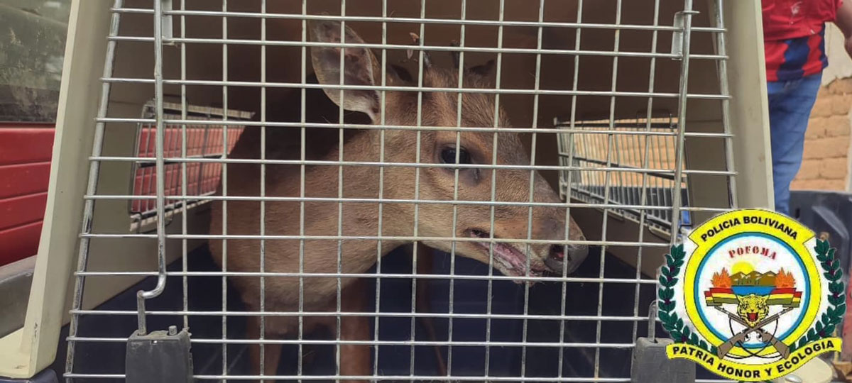 Efectivos de la Policía Forestal y Medio Ambiente (Pofoma) tras un operativo sorpresa en la comunidad de Mayaya, del municipio de Guanay, pudo rescatar a cinco animales silvestres que eran mantenidos en cautiverio.