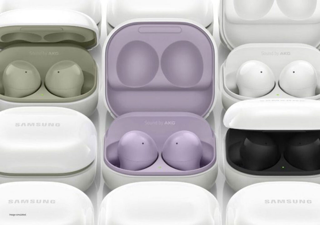 Lanzados en agosto de 2021, los Galaxy Buds2 eran los auriculares más pequeños y livianos de Samsung, pesando solo 5 gramos cada uno. Equipados con parlantes dinámicos de 2 vías, Active Noise Canceling (ANC) y una solución basada en aprendizaje automático, los auriculares bloqueaban el ruido de fondo de las llamadas. Para garantizar comodidad durante todo el día, incluían almohadillas en tres tamaños y el Earbud Fit Test.