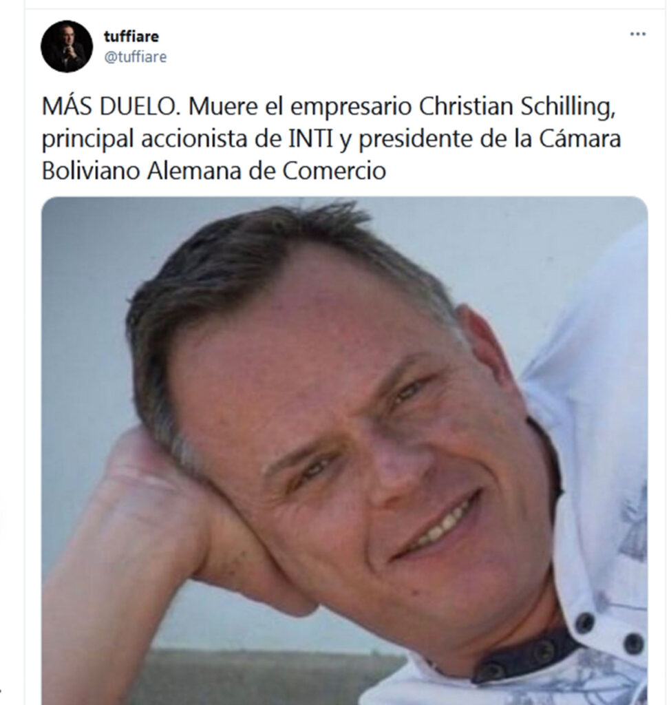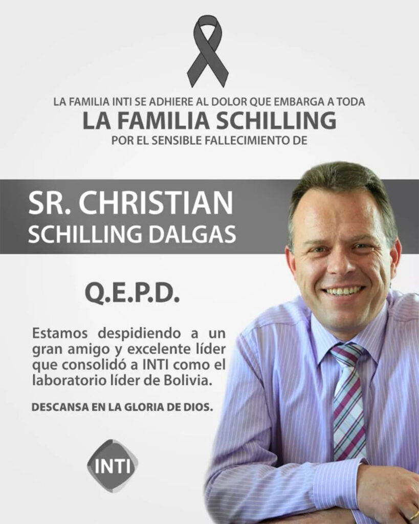 Christian Schilling, gerente general de Droguería Inti, una de las empresas más emblemáticas del país, falleció este martes por complicaciones causadas por el Covid-19.