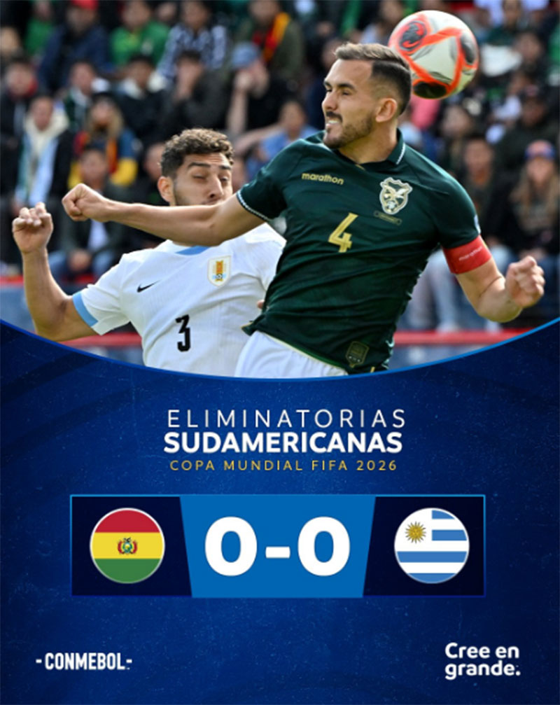 El empate para Uruguay fue muy importante, pues con 21 puntos se ubica momentaneamiente en el cuarto puesto de la tabla de Eliminatorias. En cambio, Bolivia se queda con 14 puntos y ocupa el séptimo lugar de la tabla y podría decender a la octava posición si Venezuela consigue una victoria.