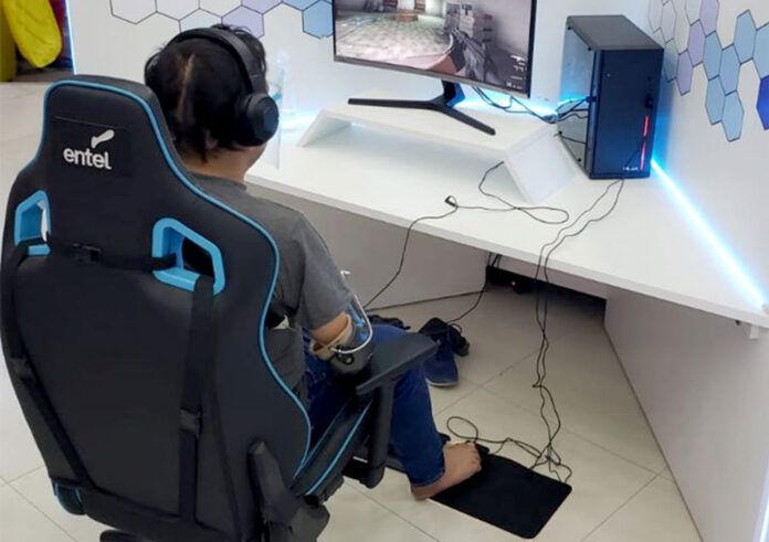 El experto en videojuegos digitales, Jorge Coca, operó el teclado con los pies en las “Islas Gamer” del stand de la Empresa Nacional de Telecomunicaciones (Entel S.A.) y cautivó al público que visita la Feria Internacional de Cochabamba (Feicobol).