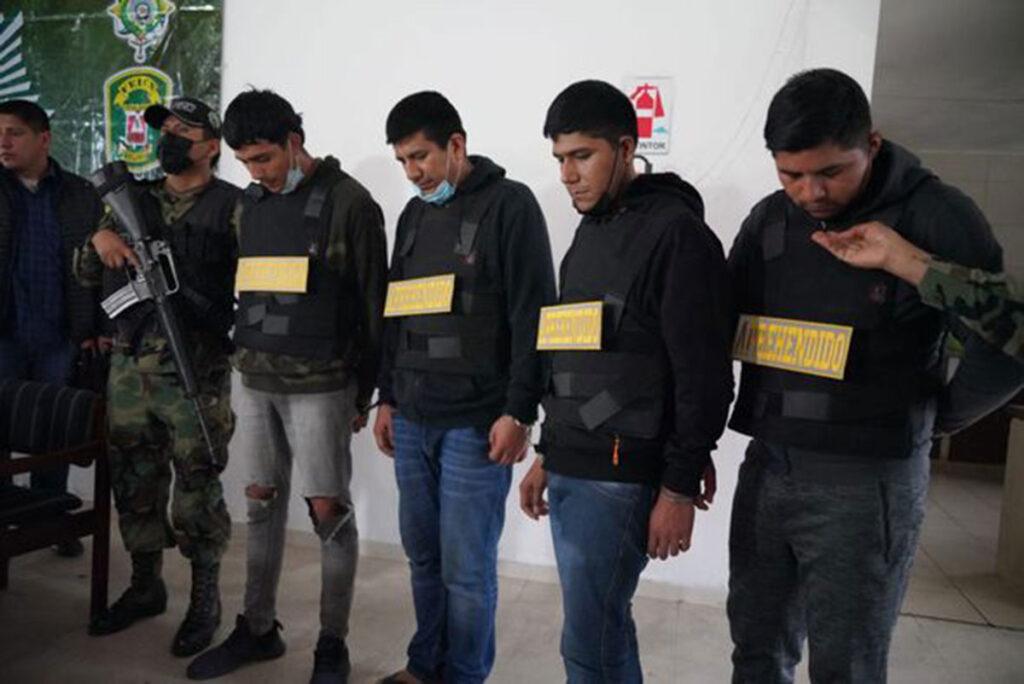 “Se ha logrado la aprehensión, inicialmente en esta investigación, de cuatro personas Lucio P. R., quién fue liberado en 2014 con base en chicanerías jurídicas. Otro de los miembros sería el señor Alex A. M., de 28 años, lamentablemente esta persona sería un efectivo policial (…). Así también se ha procedido con la aprehensión de otros dos ciudadanos de nacionalidad boliviana”, precisó.