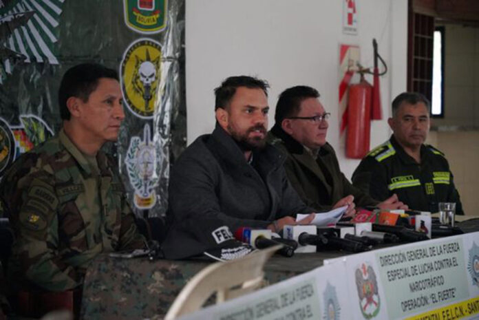 El ministro de Gobierno, Eduardo del Castillo informó este jueves que, luego de un trabajo de inteligencia de la Fuerza Especial de Lucha Contra el Narcotráfico (FELCN), se logró aprehender a un “pez gordo del narcotráfico” y a sus tres cómplices, entre ellos un policía.
