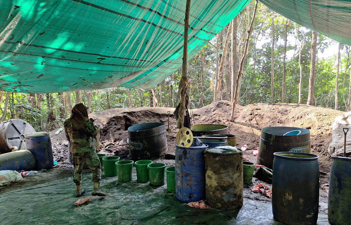 “Conforme a procedimiento policial, se realizó la destrucción e incineración de las fábricas móviles y la incineración de un total de 870 litros de cocaína líquida, equivalentes a 32 kilos con 902 gramos de cocaína”, agregó Mamani.
