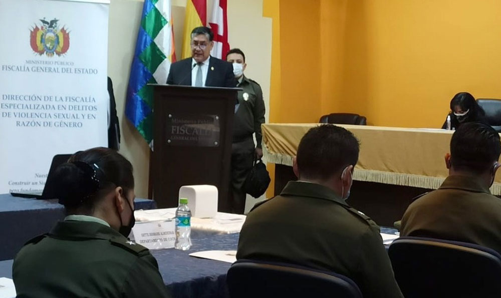 Esta actividad presencial se desarrolla en el marco del convenio de cooperación interinstitucional entre el Ministerio Público y la Policía Boliviana, que contempla el Formulario Único de Denuncias (FUD), mismo que tendrá la duración de dos días.