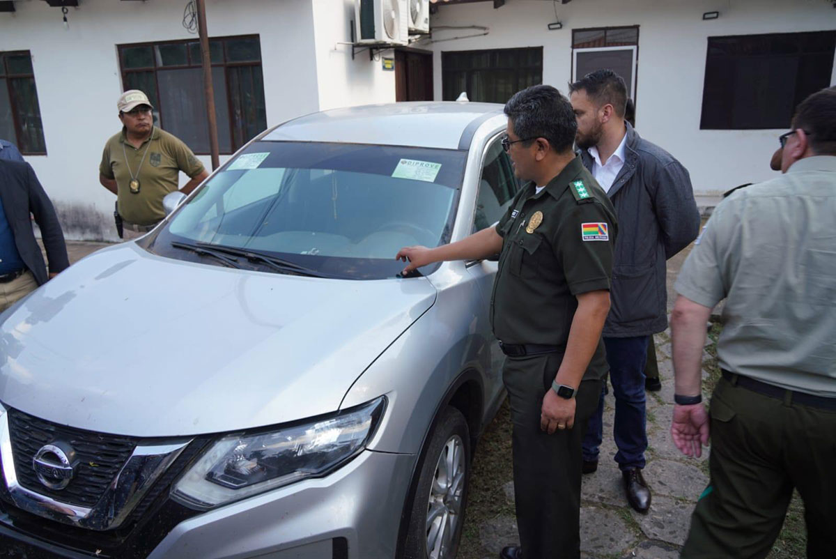 “Según reporte de inteligencia, se identificó la existencia de un vehículo Tipo Vagoneta, Marca Nissan Xtrail, de color Plomo, sin Placa de Control, que habría sido robado en el vecino país de Chile. Se encontraría circulando en la localidad de San Ignacio de Velasco del departamento de Santa Cruz”, dijo en conferencia de prensa.