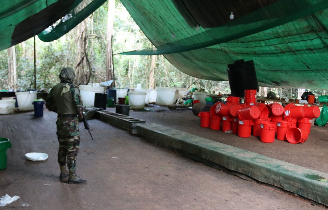 Detalló que los mega laboratorios estaban totalmente activos y albergaban entre 40 y 50 personas, por lo que se estima que podían producir 240 kilogramos de cocaína por día.