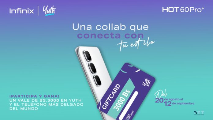 INFINIX, líder mundial en tecnología móvil innovadora y ahora la marca de smartphones en ascenso en Bolivia junto a Yuth, la principal tienda de moda urbana y lifestyle en Bolivia, anuncian una colaboración exclusiva para sortear el nuevo Hot 60 Pro+, el smartphone con pantalla curva 3D más delgado del mundo, junto con 3000 Bs. en consumo en tiendas Yuth a nivel nacional. Esta alianza fusiona tecnología de vanguardia con un estilo juvenil y audaz, ofreciendo a los jóvenes bolivianos la oportunidad de ganar un dispositivo revolucionario y beneficios exclusivos de compra.