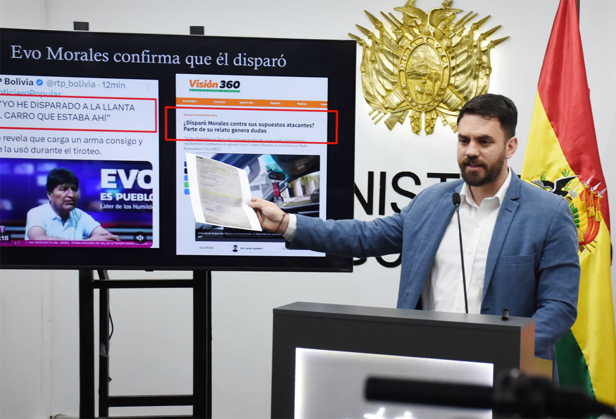 El ministro de Gobierno, Eduardo del Castillo, afirmó este lunes que el exmandatario Evo Morales y sus acompañantes en el vehículo que viajaba ayer domingo; dispararon contra efectivos policiales que realizaban un operativo en el Chapare.
