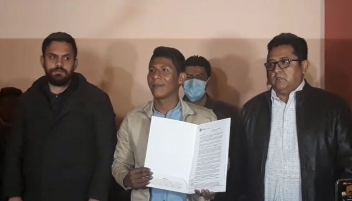 El ministro de Gobierno, Eduardo del Castillo junto al ministro de Desarrollo Rural y Tierras, Remmy Gonzales, acreditaron ayer en conferencia de prensa a la dirigencia de Arnold Alanes, después de que horas antes efectivos del orden reprimieron a cocaleros que respaldan a Lluta.