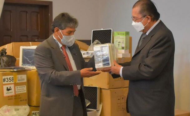 El ministro de Salud y Deportes, Edgar Pozo, entregó este jueves equipos de terapia intensiva valuados en más de 2 millones de bolivianos al Hospital de Clínicas de la ciudad de La Paz.